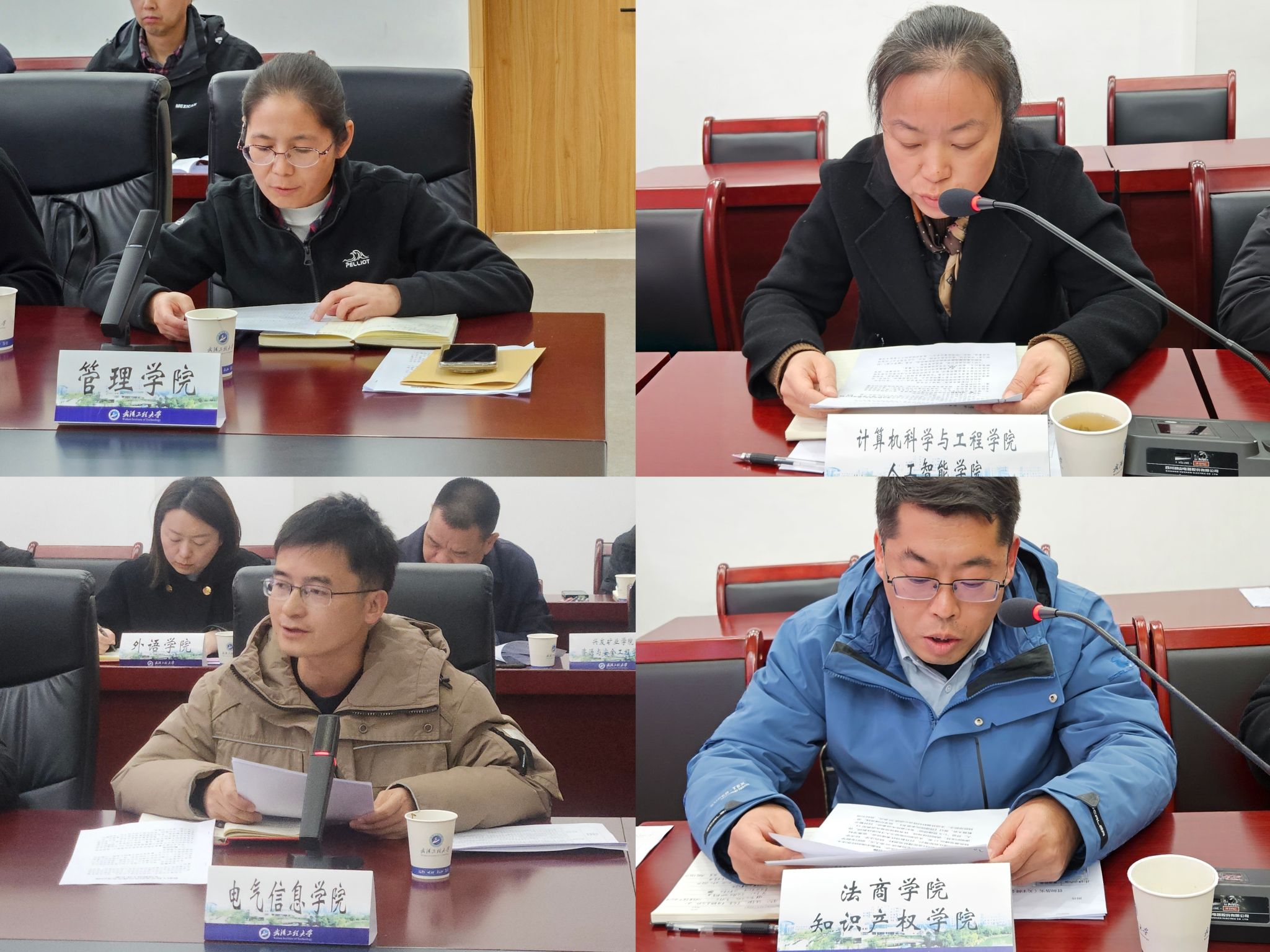 管理学院、计算机科学与工程学院(人工智能学院)、电气信息学院、法商学院(知识产权学院)分别作了交流发言,其他各学院提交了书面交流材料。